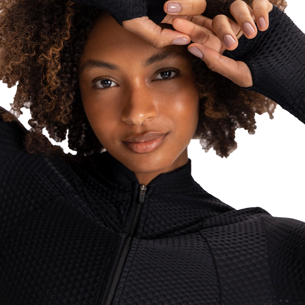 Chamarra para Mujer LIVE! Step Run. Cuello alto y cierre personalizado. Cuenta con abertura para el pulgar en los puños lo cual aporta mayor comodidad y seguridad. Cuenta con tecnologías Easy Care y Quick Dry. Logotipo cosido en la espalda. 80% poliamida y 20% elastano con tacto suave y efecto de superficie texturizada.