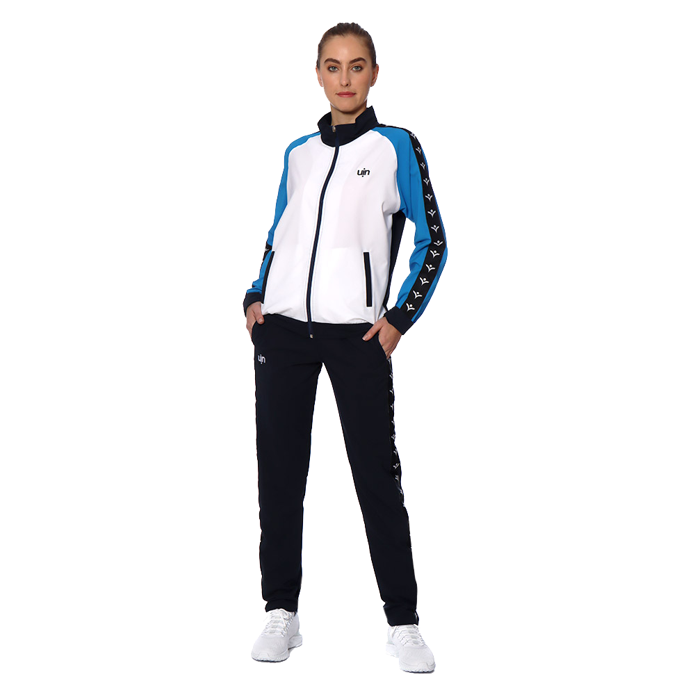 Conjunto para Mujer UIN. Chamarra con cierre a la barbilla, bolsillos frontales y logotipo bordado. Pantalón con cintura elástica ajustable, bolsillos laterales y logotipo bordado. 100% poliéster.