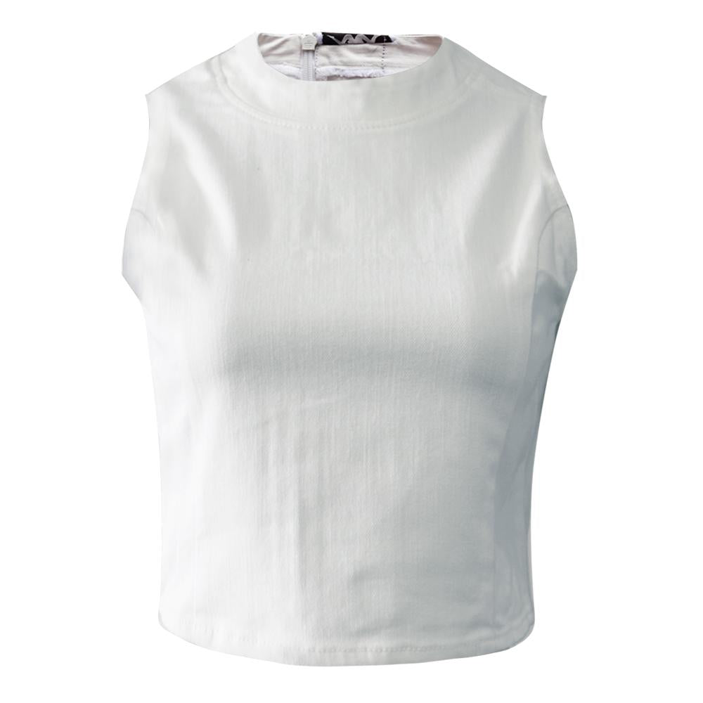 Crop Top tipo Halter para Dama colección Authentic Denim. Cuello redondo. Cierre en la espalda. Tejido 98% algodón 2% elastano.