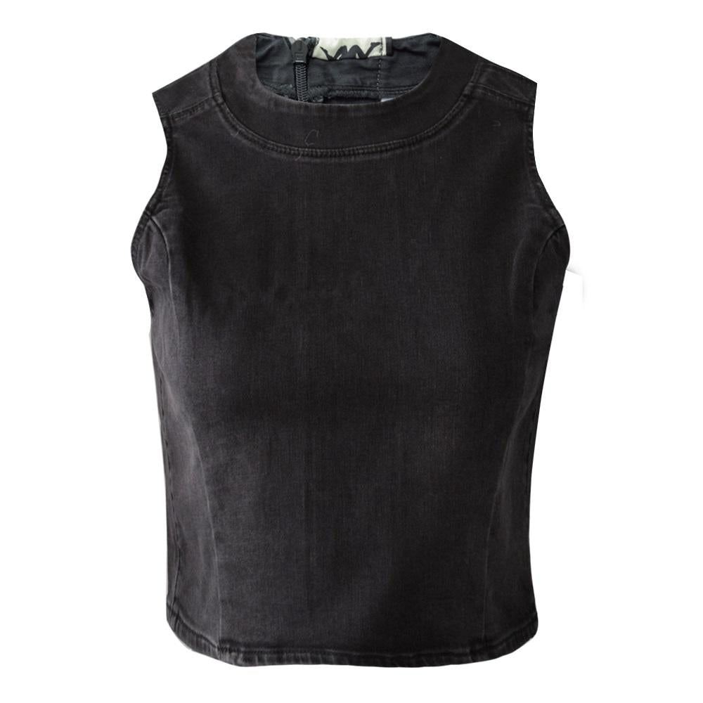 Crop Top tipo Halter para Dama colección Authentic Denim. Cuello redondo. Cierre en la espalda. Tejido 98% algodón 2% elastano.