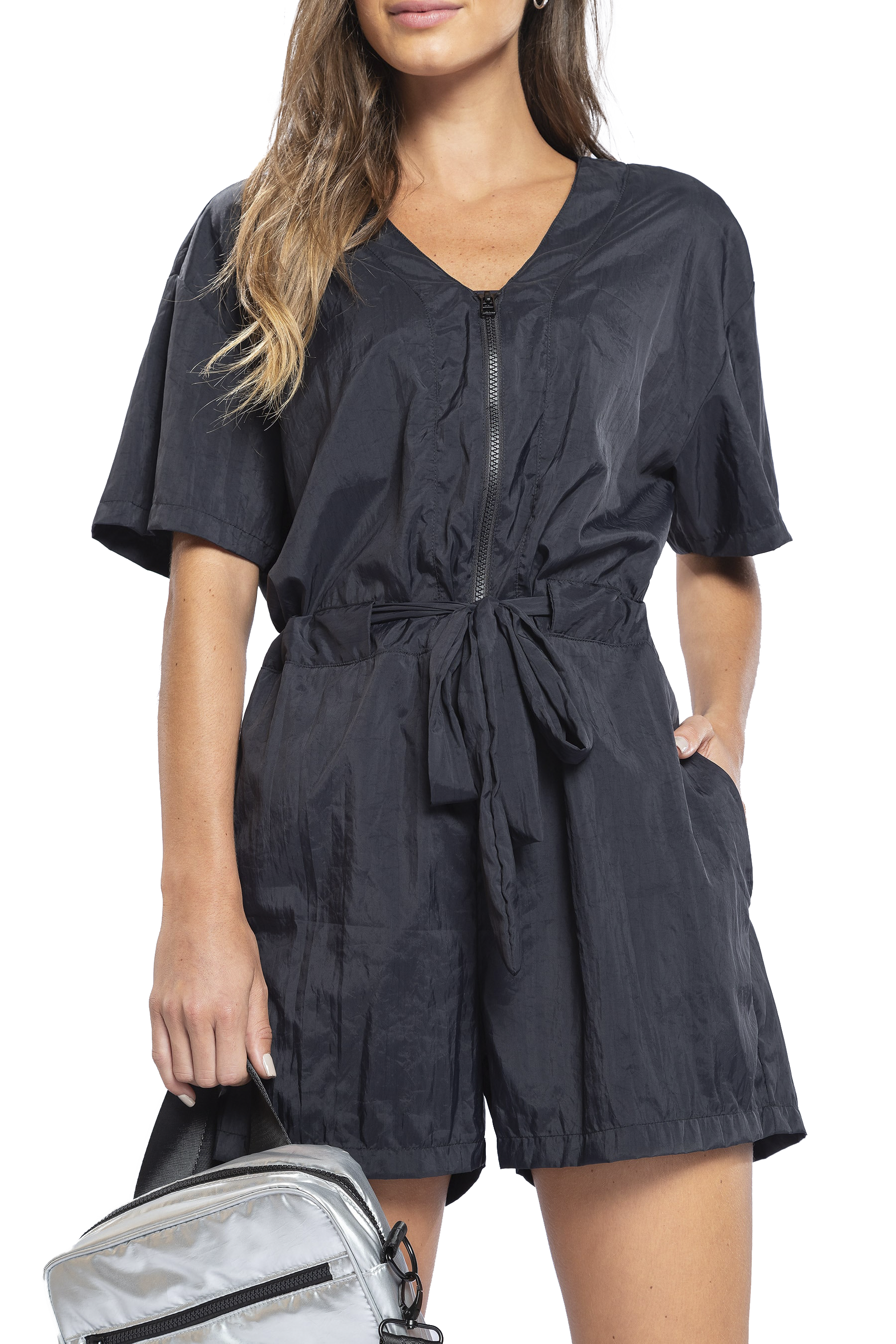 Jumpsuit corto para Mujer LIVE! Corte holgado, manga corta, bolsillos y cierre frontal. Cinturón oculto con el cual se logra un mayor ajuste al cuerpo. Cuenta con tecnologías Easy Care y Quick Dry. Tejido 100% poliamida.