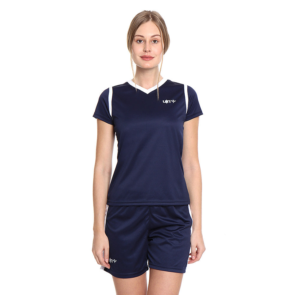 Kit (playera y short) básico para Dama. Playera: cuello V, manga corta y logotipo reflejante. Short: cintura elástica ajustable y logotipo reflejante. 100% poliéster.