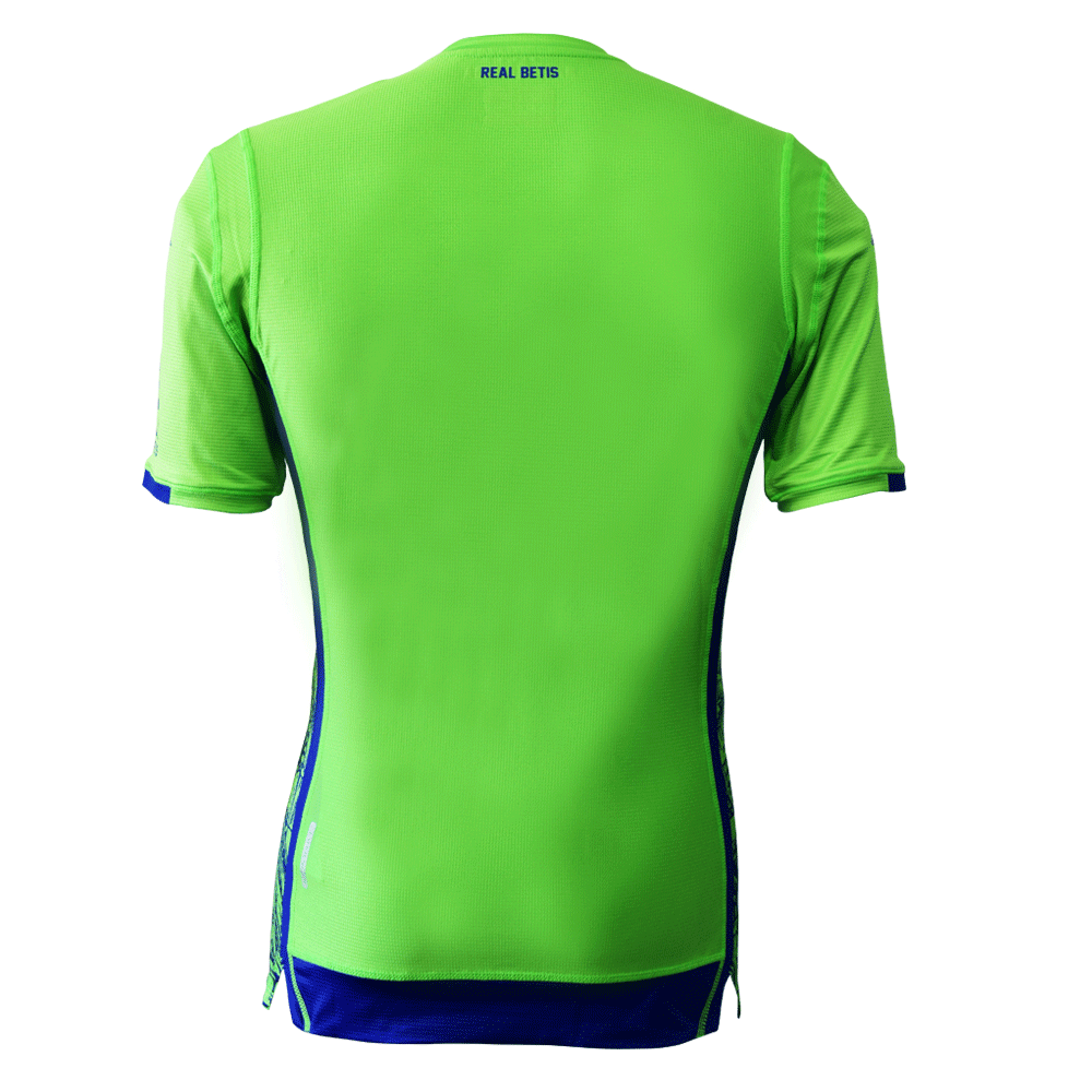 Kombat Gala Real Betis para Caballero. Skin fit. Manga corta. Cuello V. Escudo 3D. Logotipos estampados. Tejido 91% Poliéster. 9% Elastano.