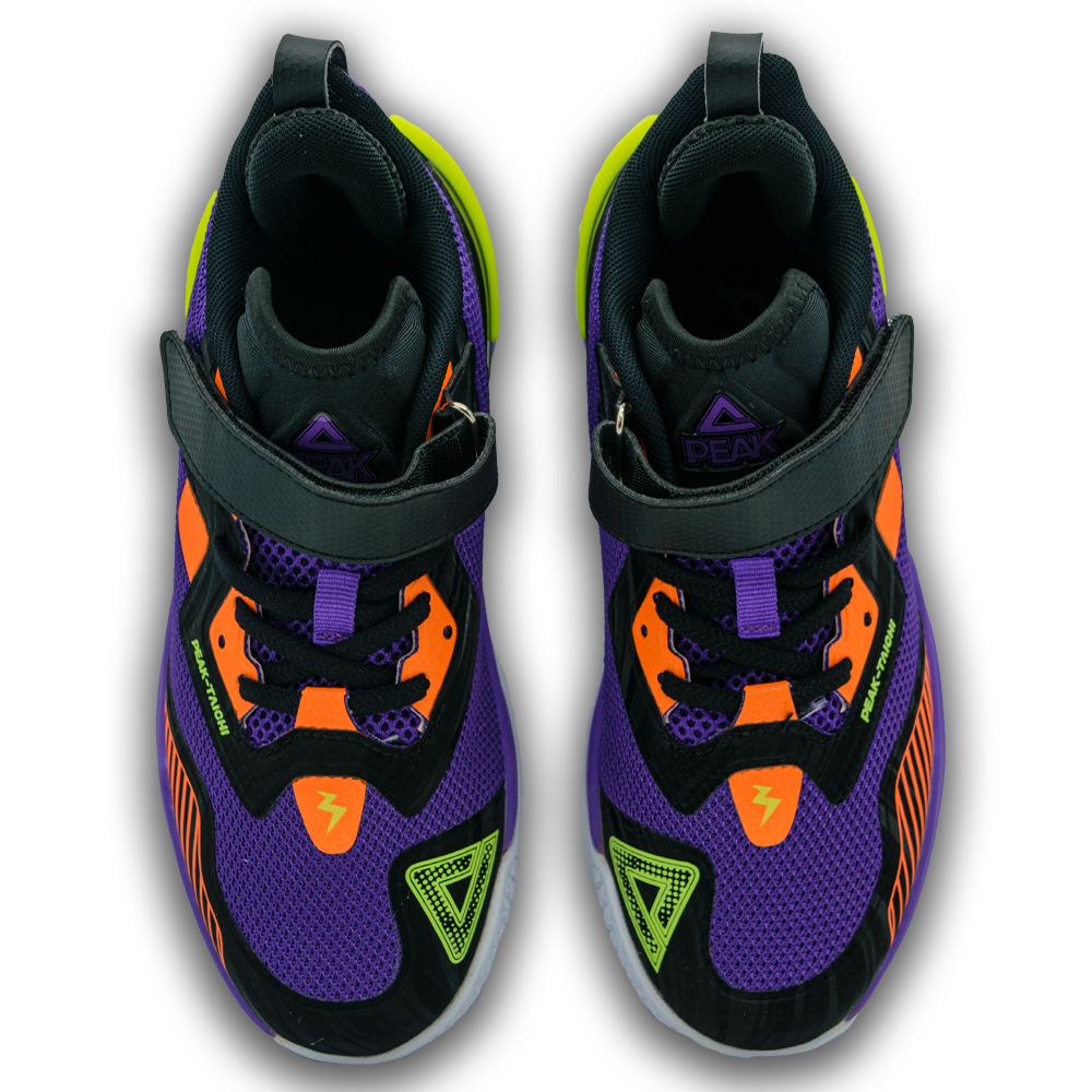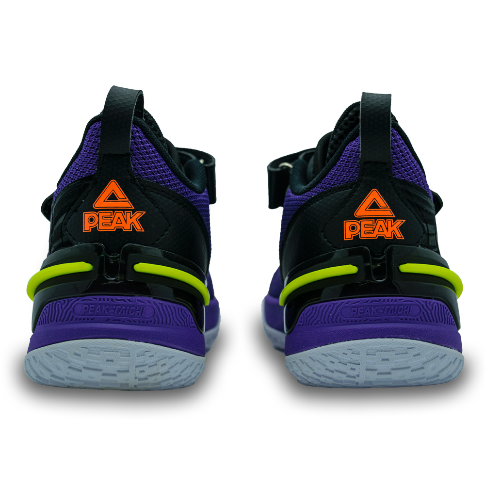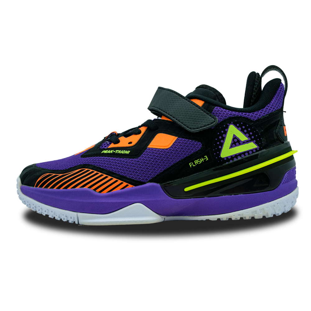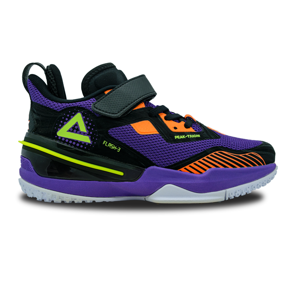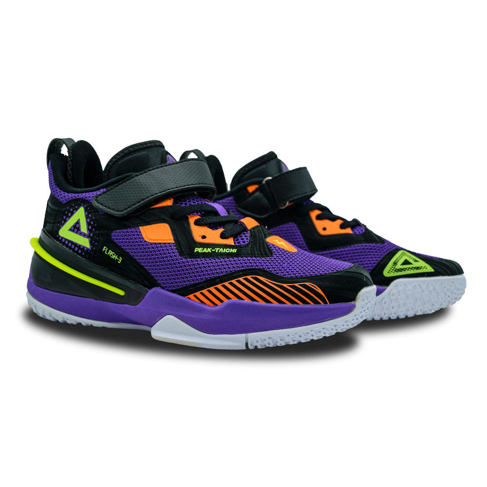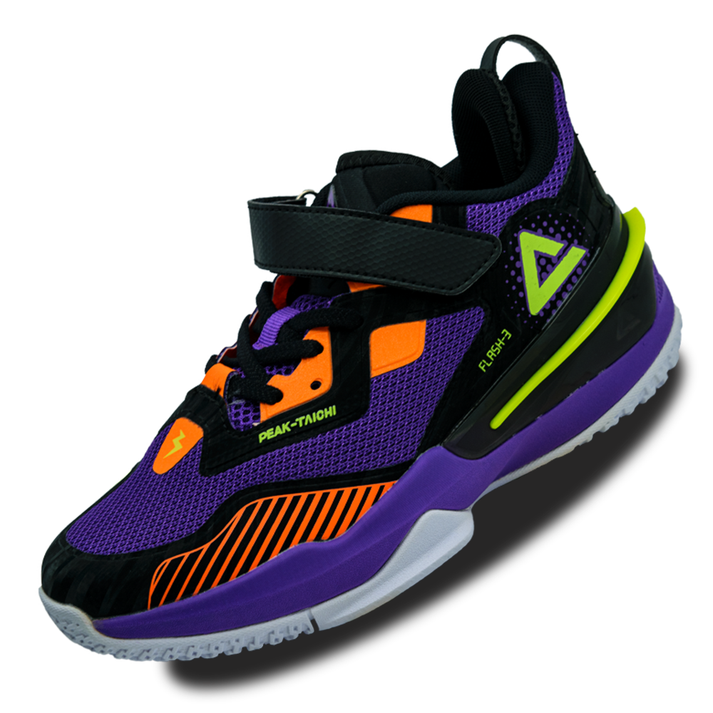 Tenis Básquetbol PEAK-TAICHI FLASH-3 para Niño. Diseñados para usarlos en cualquier tipo de terreno gracias a su tecnología TAICHI (Tecnología desarrollada a base de polímeros inteligentes los cuales ayudan a que las moléculas incluidas en la media-suela del tenis se separen una de la otra al caminar proporcionando una experiencia óptima de comodidad; cuando corres estas moléculas se entrelazan dando así un mayor soporte).