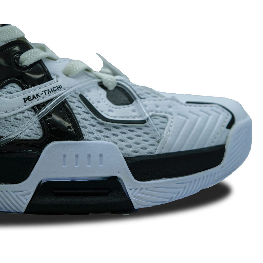 Tenis Básquetbol PEAK-TAICHI para Niño. Diseñados para usarlos en cualquier tipo de terreno gracias a su tecnología TAICHI (Tecnología desarrollada a base de polímeros inteligentes los cuales ayudan a que las moléculas incluidas en la media-suela del tenis se separen una de la otra al caminar proporcionando una experiencia óptima de comodidad; cuando corres estas moléculas se entrelazan dando así un mayor soporte).