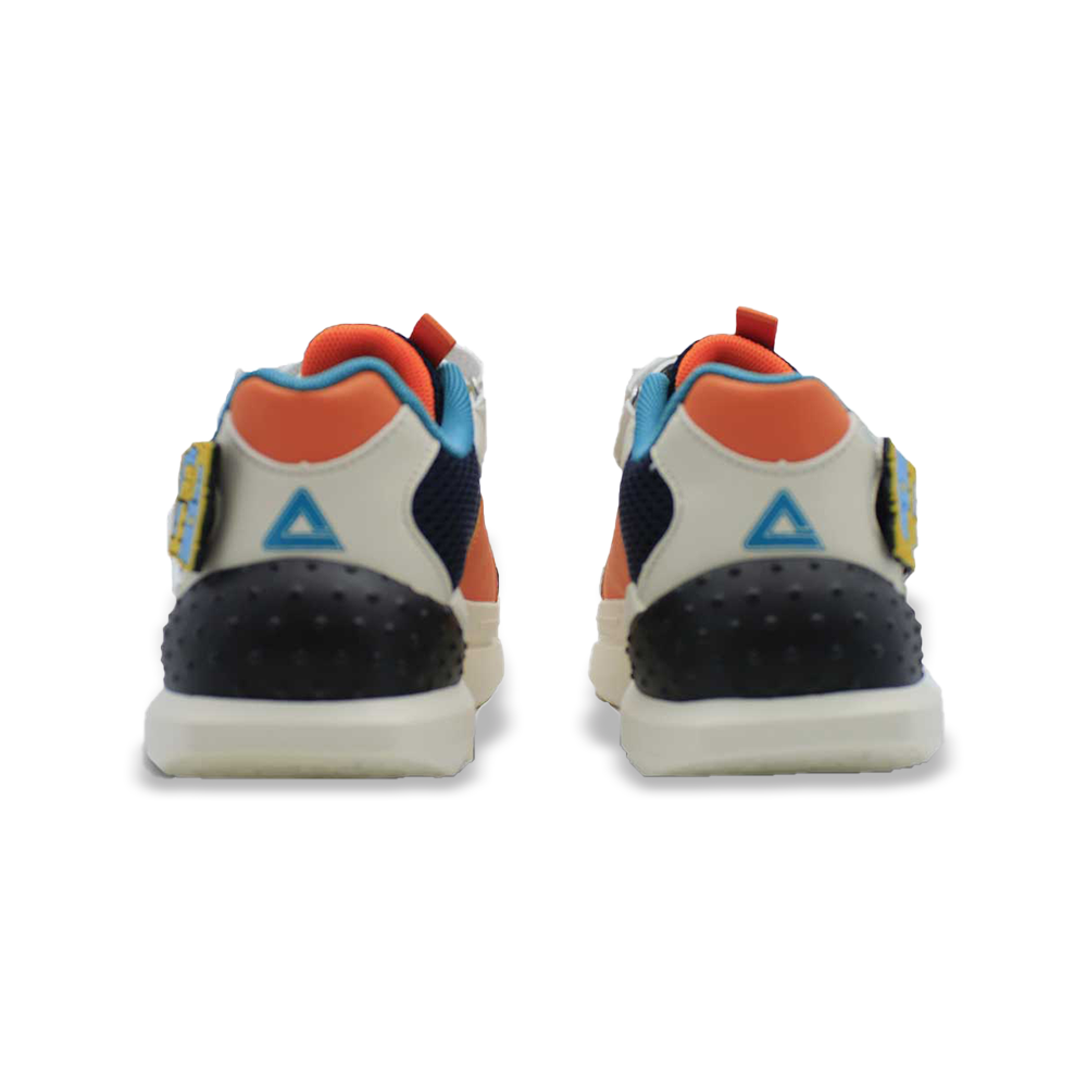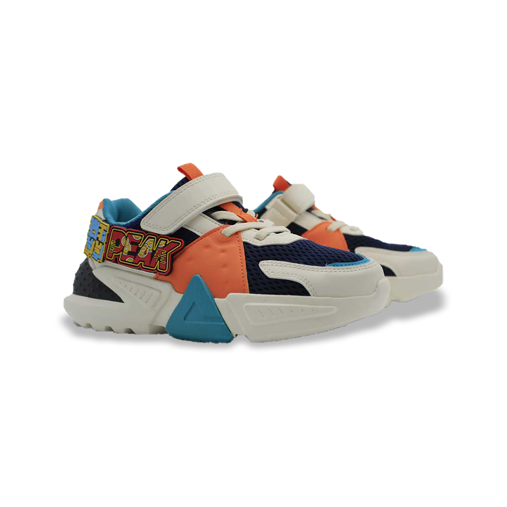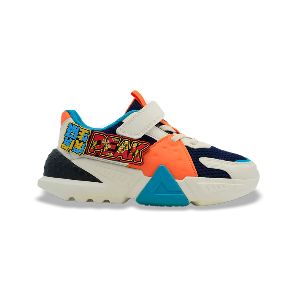 Tenis PEAK para Niño. Tecnología antibacterial con iones de plata. Diseñados para absorber impactos y brindar mayor amortiguamiento. Construidos en tela lo cual los hace más transpirables manteniendo tus pies frescos y libres de humedad y un toque de piel sintética la cual les da un diseño vanguardista. Banda ajustable con velcro sobre las agujetas la cual proporciona una mayor sujeción al pie. Suela antiderrapante.