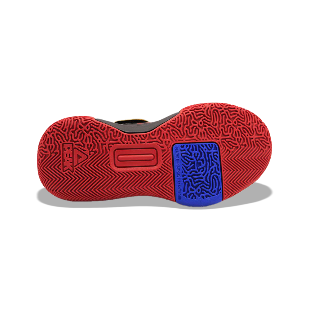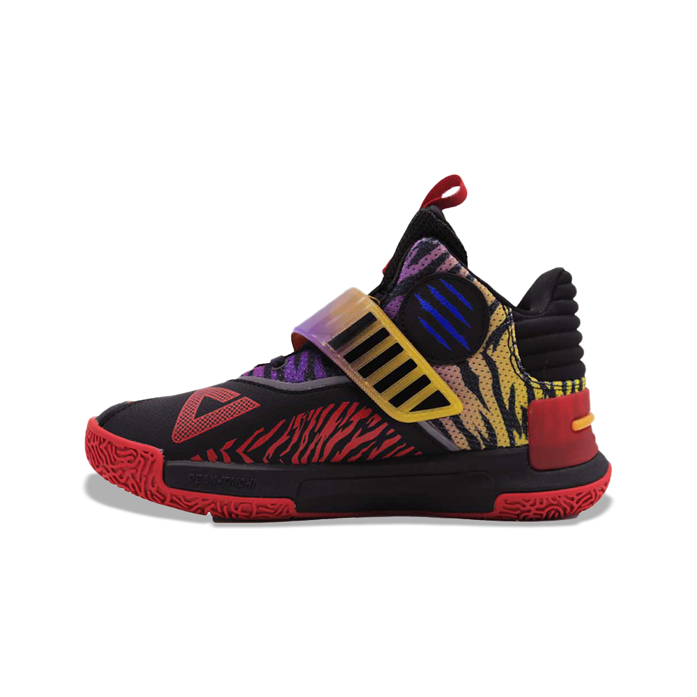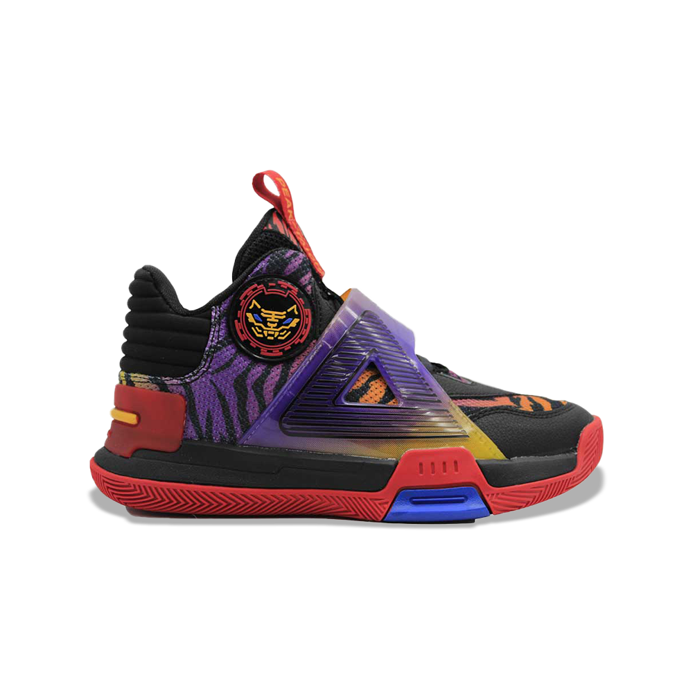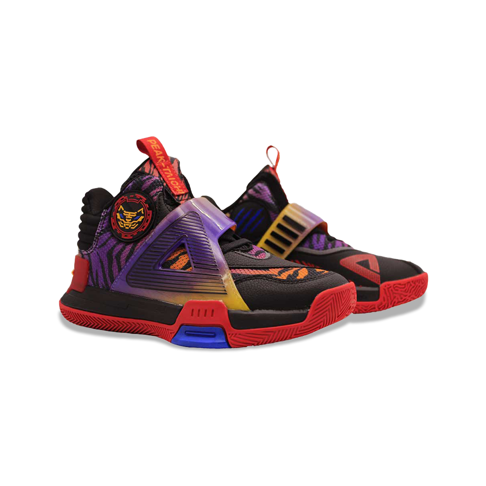 Tenis PEAK-TAICHI Básquetbol para Niño colección Big Triangle. Diseñados para usarlos en cualquier tipo de terreno gracias a su tecnología TAICHI (Tecnología desarrollada a base de polímeros inteligentes los cuales ayudan a que las moléculas incluidas en la media-suela del tenis se separen una de la otra al caminar proporcionando una experiencia óptima de comodidad; cuando corres estas moléculas se entrelazan dando así un mayor soporte).