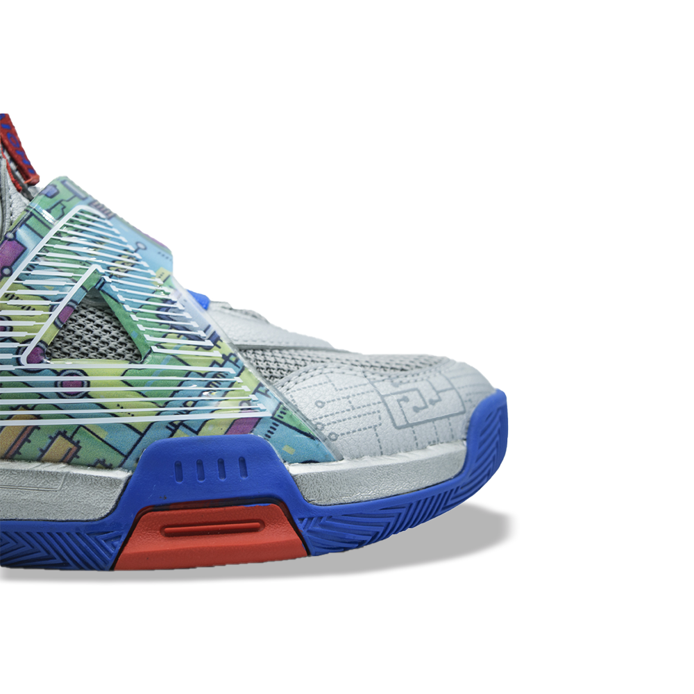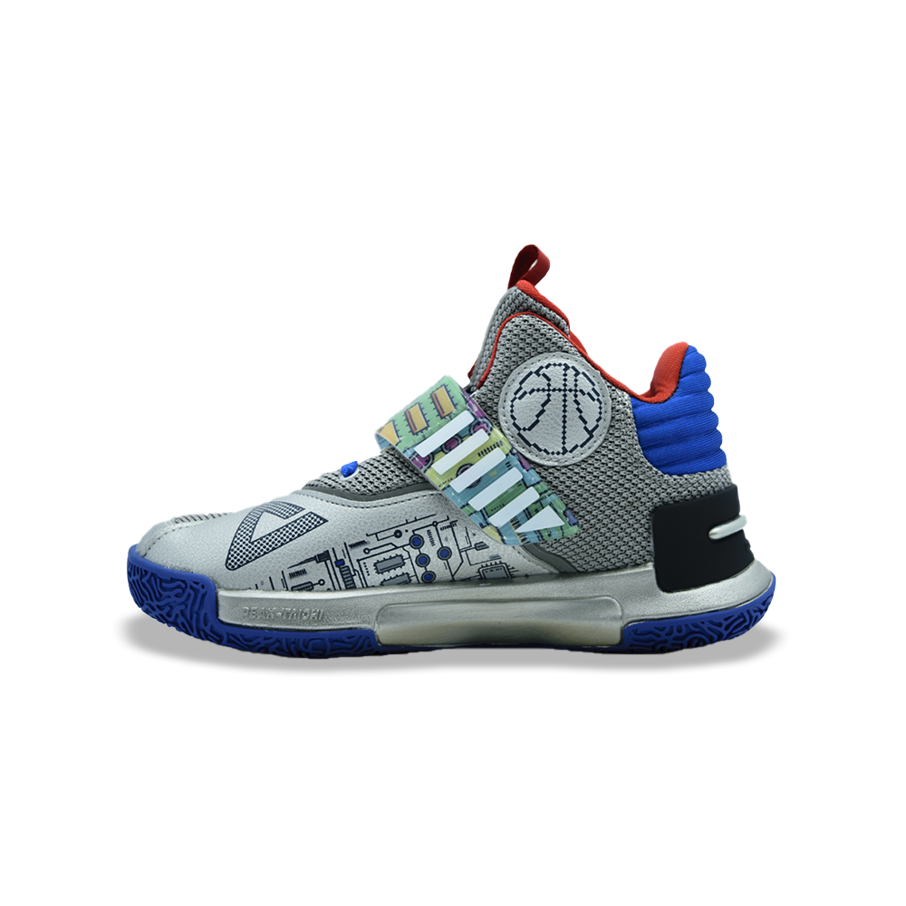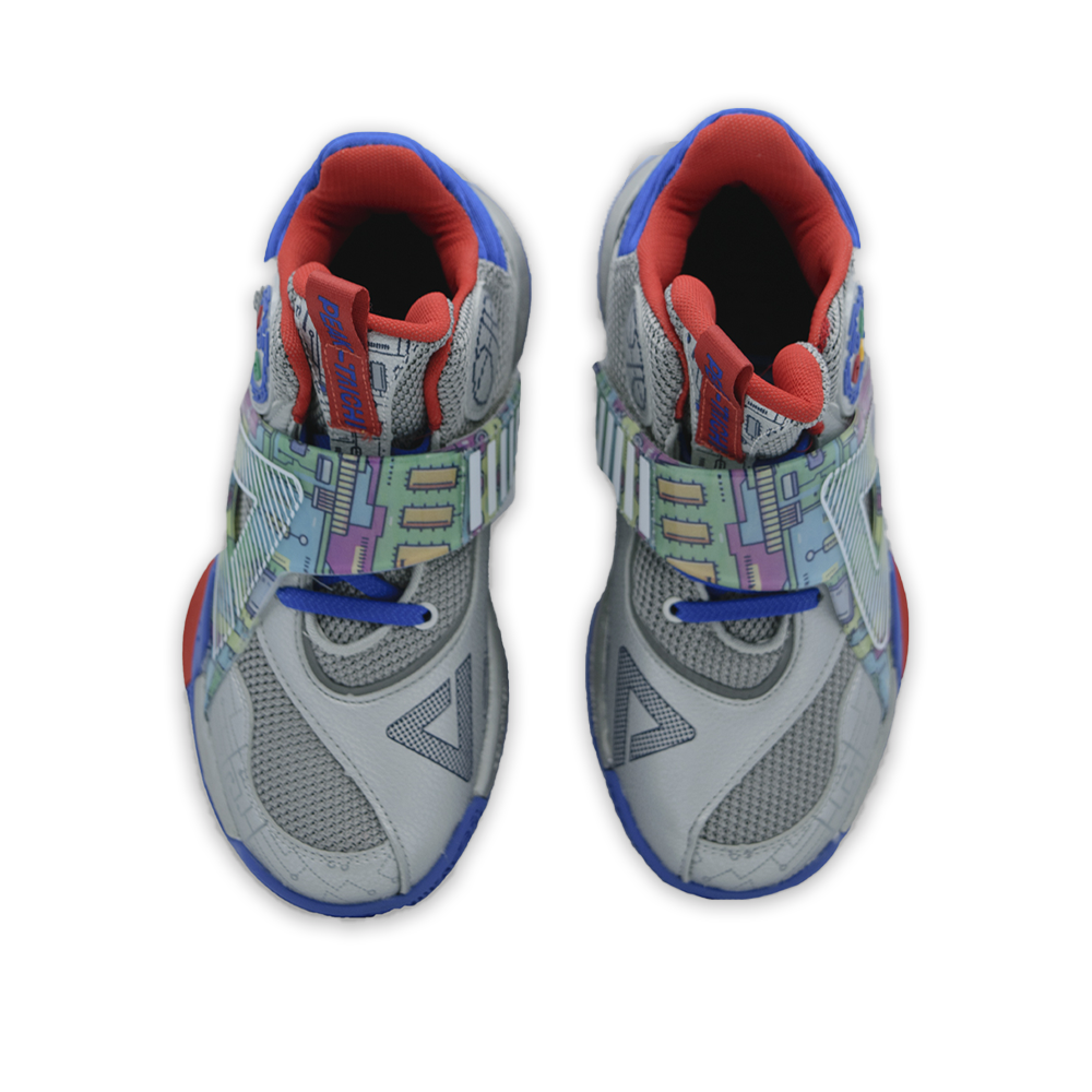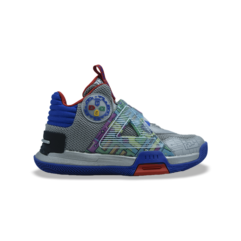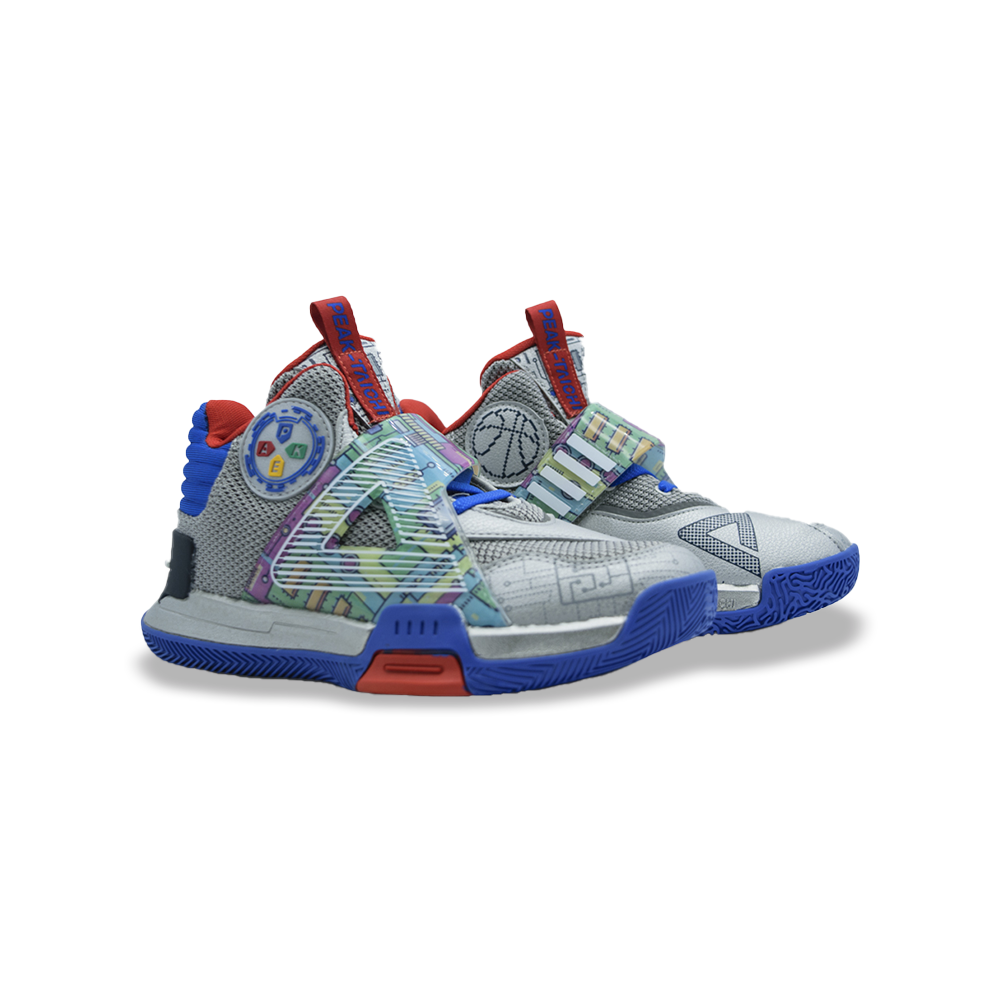 Tenis PEAK-TAICHI Básquetbol para Niño colección Big Triangle. Diseñados para usarlos en cualquier tipo de terreno gracias a su tecnología TAICHI (Tecnología desarrollada a base de polímeros inteligentes los cuales ayudan a que las moléculas incluidas en la media-suela del tenis se separen una de la otra al caminar proporcionando una experiencia óptima de comodidad; cuando corres estas moléculas se entrelazan dando así un mayor soporte).