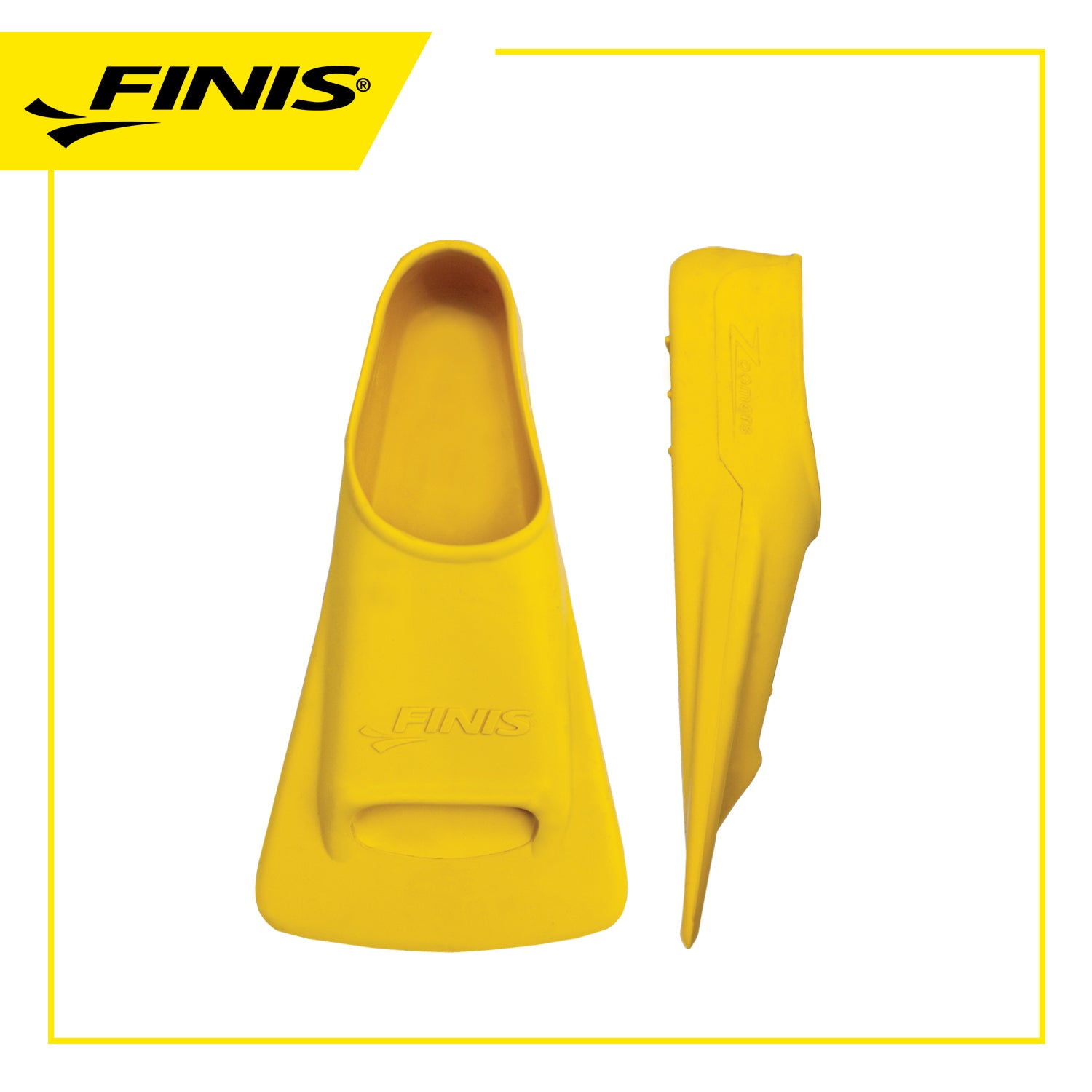 Zoomers FINIS Z2 de oro. Estas aletas maximizan la resistencia del agua para mantener la propulsión antes y después de la carrera.